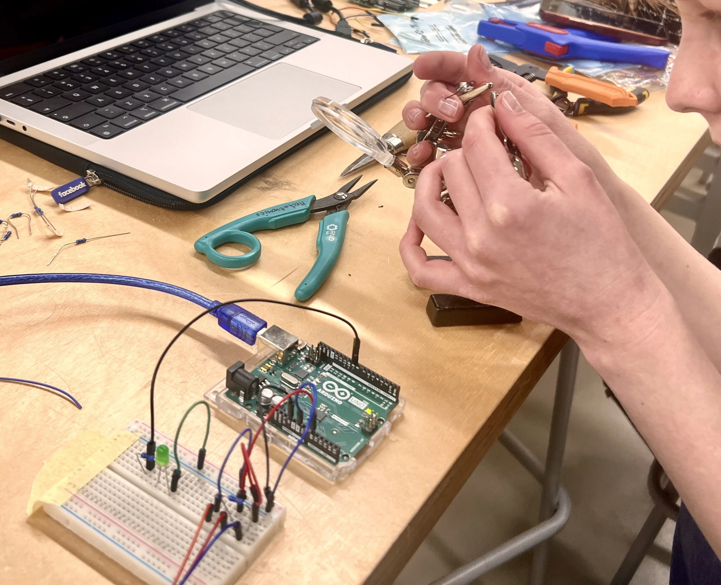 Exploring sensor technology, optimizing feedback mechanisms (visual, auditory, haptic). Testing sticker forms for comfort, usability and component layout.