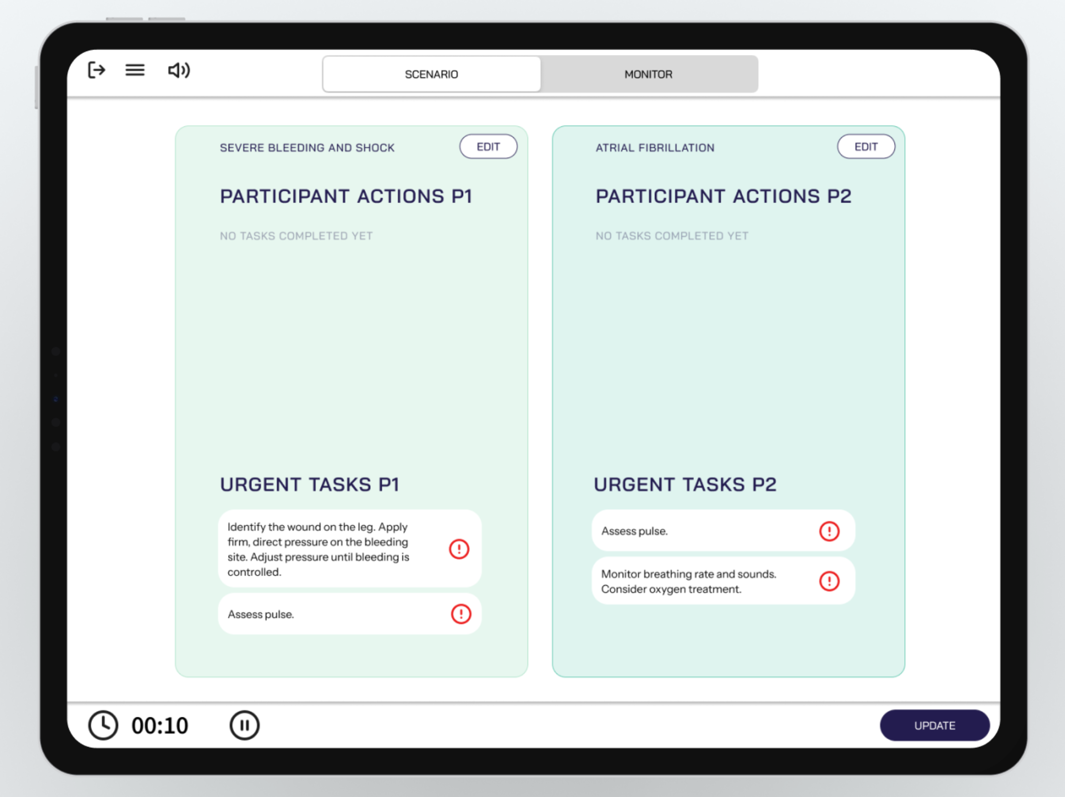 Patient panel before and after a scenario